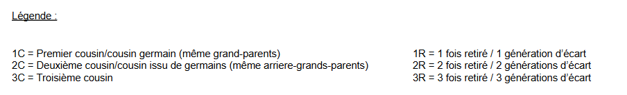 Le tableau ci-dessous permet de faire le lien entre le pourcentage d’ADN partagé et les centimorgans en fonction de la parenté.